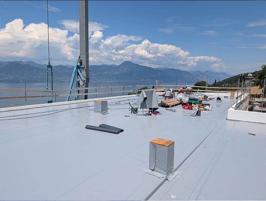Abbiamo seguito ogni fase della realizzazione in cantiere, controllando con precisione la qualità delle saldature, delle giunzioni, degli scarichi e dei dettagli verticali, per garantire la perfetta esecuzione secondo la norma UNI 11333-3 (posa) e UNI 11345 (controllo e progettazione).